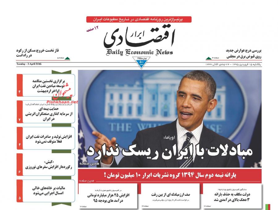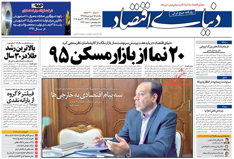 صفحه اول روزنامه های یکشنبه‌ ۱۵ فروردين 1395 را مشاهده می کنید.