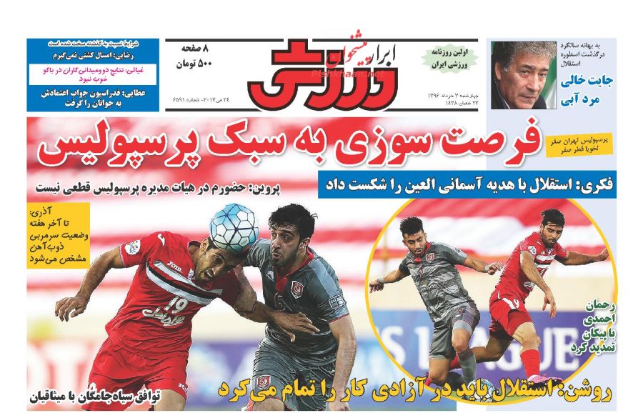 صفحه اول روزنامه های چهارشنبه 3 خرداد 96 را مشاهده می کنید.