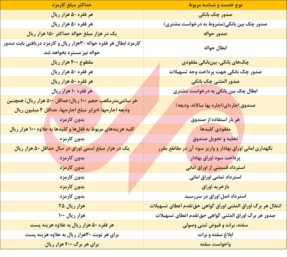 خبرگزاری مهر، فهرست کامل عمدهترین نرخهای جدید کارمزدهای بانکی را منتشر کرد:
