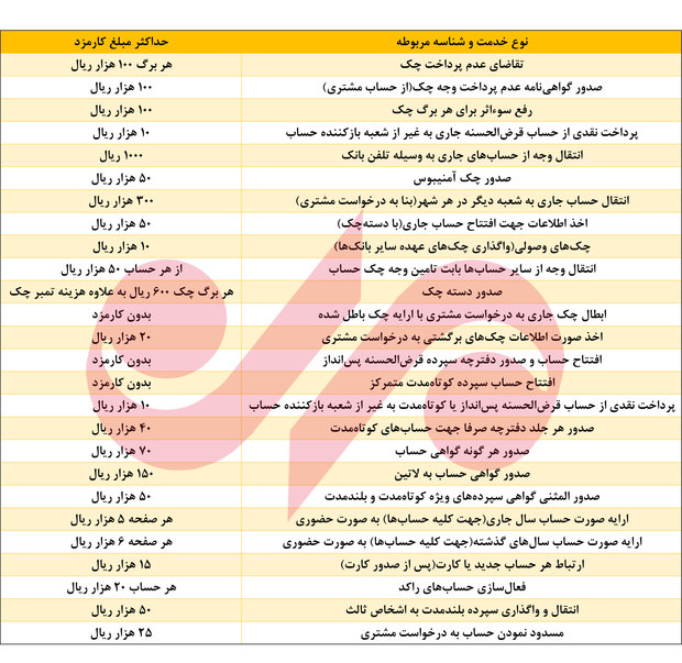 بانک مرکزی در ابلاغیهای به بانکهای کشور تعرفه جدید کارمزد خدمات بانکی مصوب سال ۹۵ و نرخهای قابل وصول را اعلام کرد که طبق آن، نرخ صدور چک بانکی از ۳۷۰۰ تومان به ۵ هزار تومان افزایش یافت.