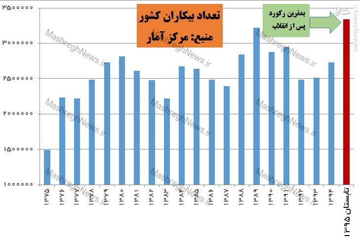پیش از این رکورد بالاترین آماری بیکاران کشور به سال 1389 مربوط بود که در آن سال 3 میلیون و 218 هزار نفر بیکار بودند.